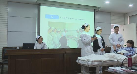 查房主持人灵活应用中英双语教学模式,在查房新形式上进行了尝试。在情景再现环节,以临床案例为背景,采取省卫计委三级成组考核、逐级点评模式,旨在提高护士灵活运用知识点针对性地分析和解决问题的能力,提高高年资护士及责任组长专科专业知识掌握及指导点评的能力。