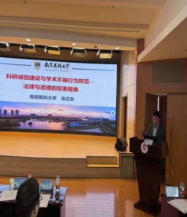 学术报告由盐城市第一人民医院孙关副院长、江苏医药职业学院郝军燕教授、东台市人民医院杨小进副院长以及阜宁县中医院孙鹏副院长分别主持。南通大学附属医院张妞教授以《涉及人的生物医学研究伦理审查及案例分享》为题,系统解析伦理审查要点;苏州大学附属第一医院张华教授线上讲授《临床研究的伦理审查与受试者保护》,深入阐释受试者权益保护的核心理念。培训内容进一步延伸至科研能力提升与学术行为规范。江苏大学苏兆亮教授结合自身经验,分享《国自然申请的一点体会》,为参会人员提供项目申报的实用指导。南通大学张新化教授与南京医科大学张正东教授则分别从教育实践与法律道德双重视角,强调科研诚信建设的重要性,并就学术不端行为的防范提出具体建议。