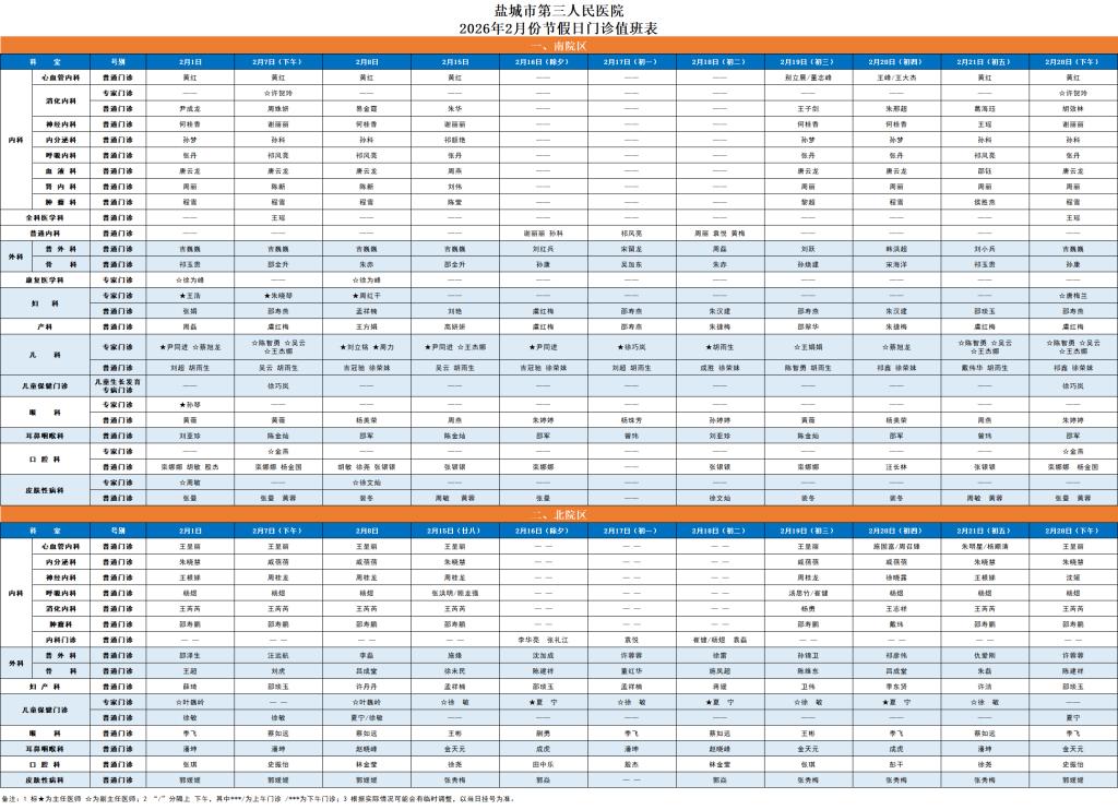 节假日门诊值班表 首页 > 就医指南 > 门急诊指南 > 门诊排班 > 节假日门诊值班表 门诊一站式服务台: 0515-81600080(南院区) 0515-81608266(北院区) 敬老专线: 0515-81602286(南院区) 0515-81608123(北院区)
