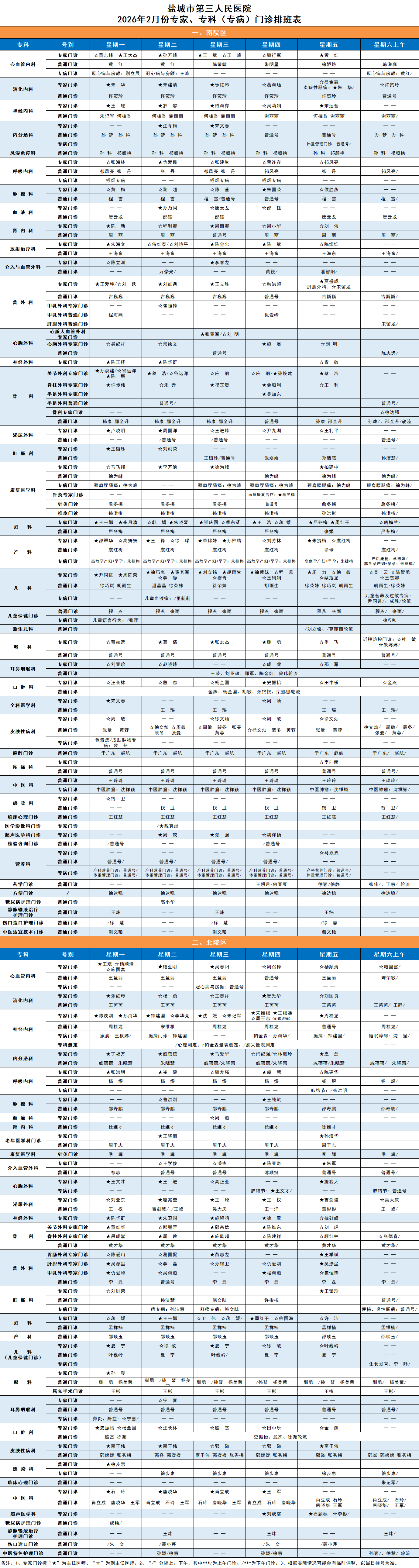 专家门诊排班表 首页 > 就医指南 > 门急诊指南 > 门诊排班 > 专家门诊排班表 门诊一站式服务台:0515-81600080(南院区)0515-81608266(北院区)敬老专线:0515-81602286(南院区)0515-81608123(北院区)